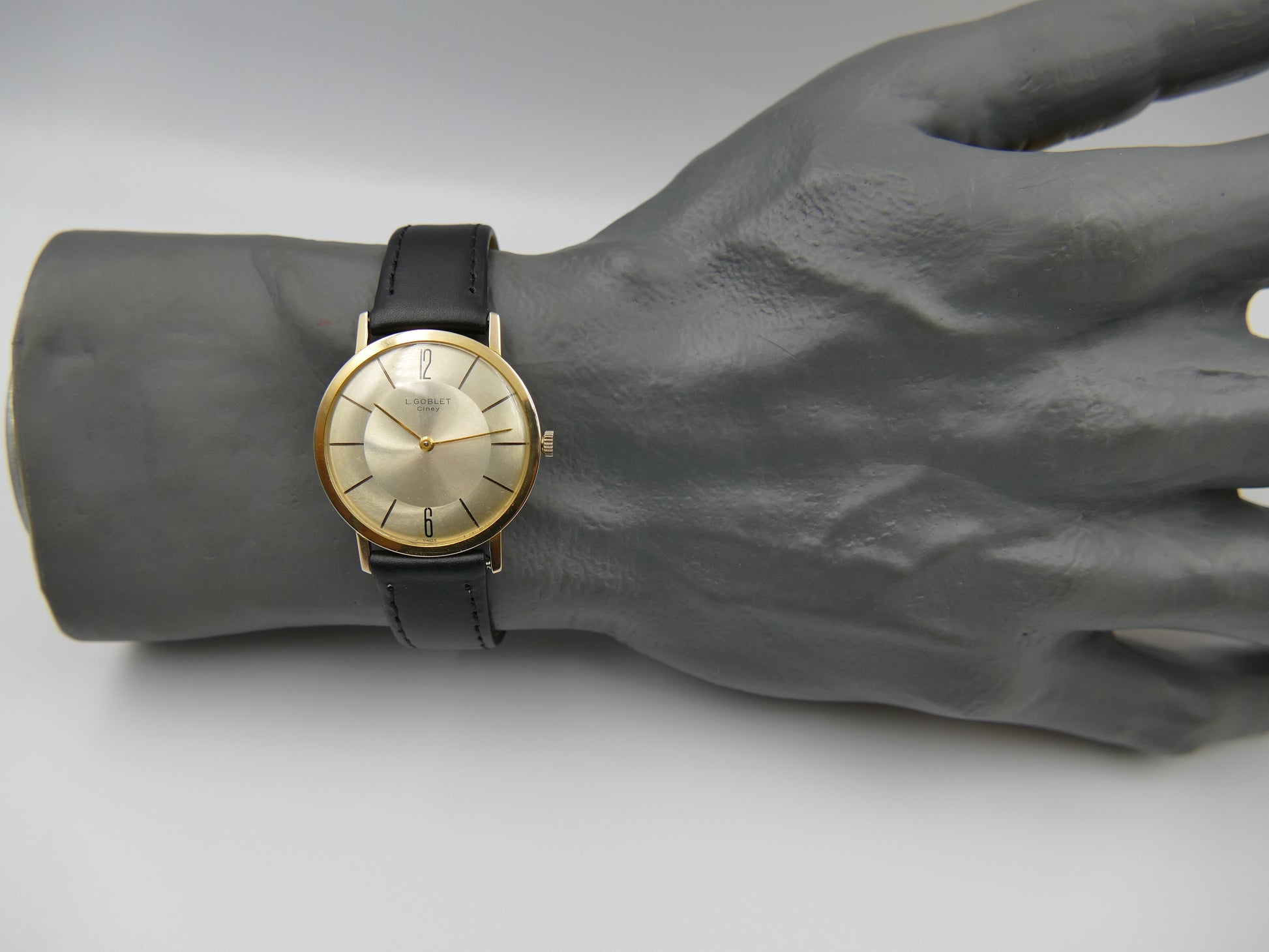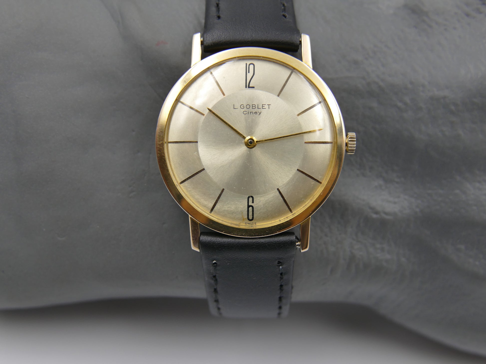80s vintage watch mens L. Goblet Ciney hand wind Peseux 7001 ultra thin serviced