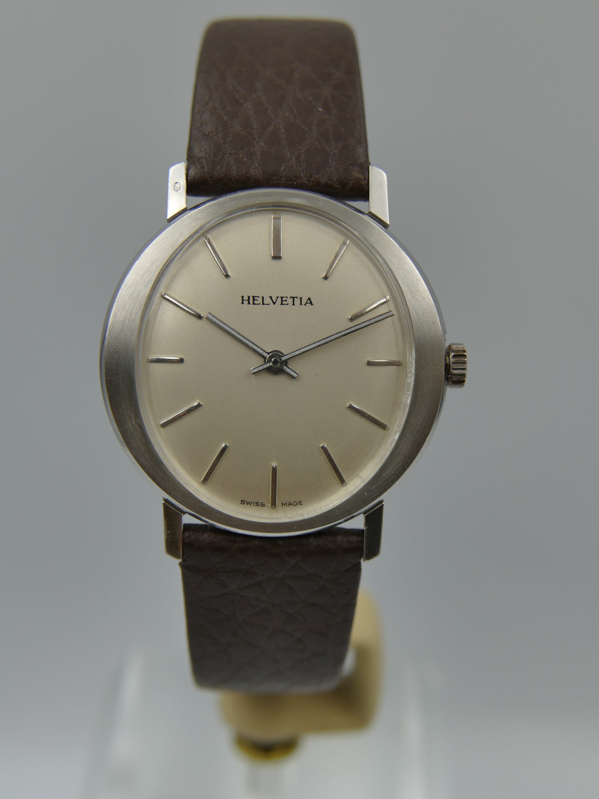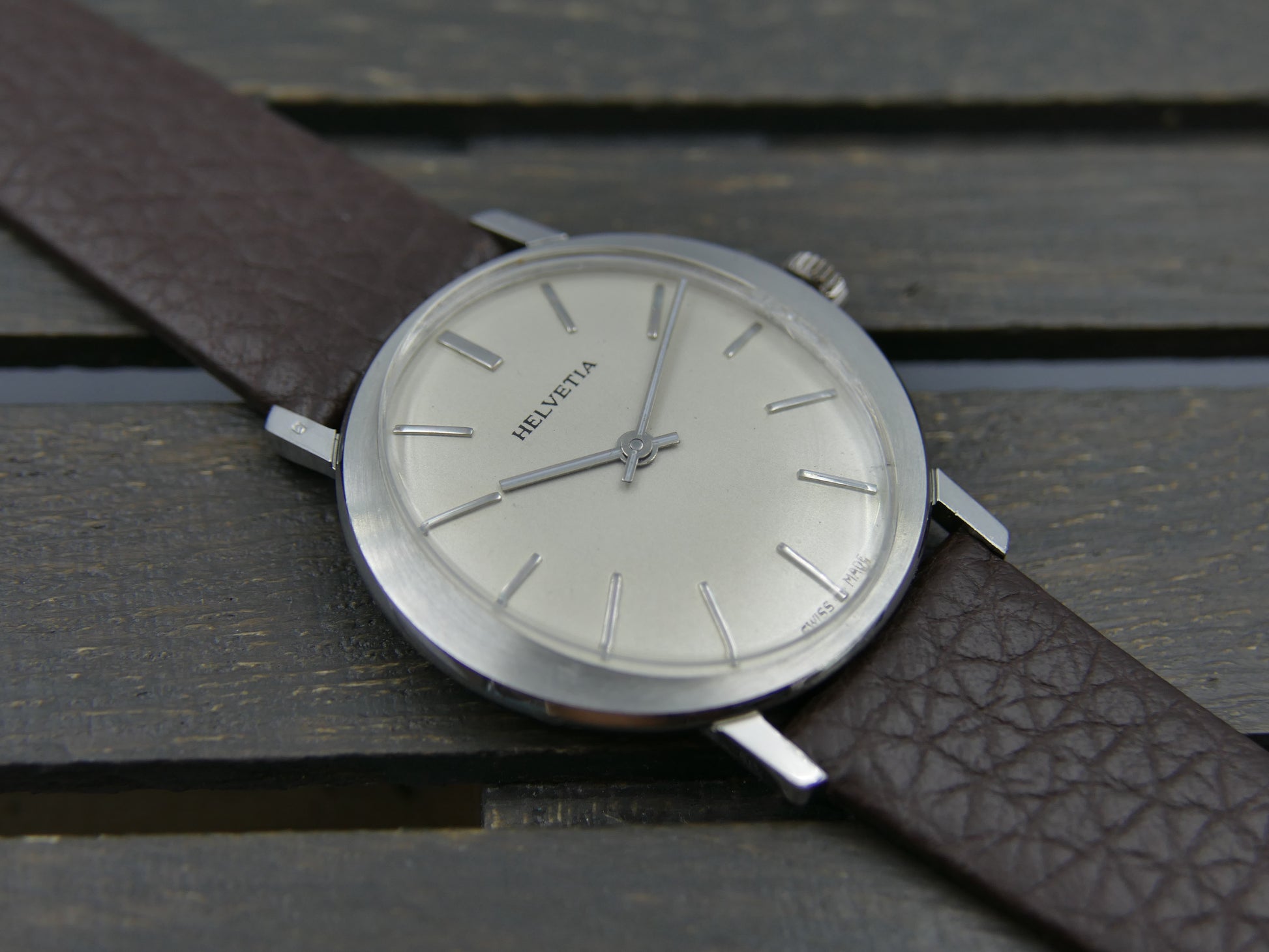 This Helvetia timepiece comes from a brand that shares its roots with Omega, one of the most prestigious names in horology.